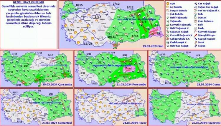 Meteoroloji Genel Müdürlüğünden alınan hava tahmin raporuna göre hafta boyunca hava sıcaklığında önemli bir değişiklik beklenmiyor. Rüzgârın, yurdun batı kesimlerinde kuzeyli, yurdun doğu kesimlerinde ise güney ve doğulu yönlerden hafif, ara sıra orta kuvvette esmesi bekleniyor.