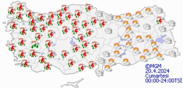 Meteoroloji Genel Müdürlüğü (MGM) 45 il için sarı kodlu uyarıda verdi ve bu illeri sağanak yağış ve fırtınaya karşı uyardı. Gece saatlerinden itibaren Marmara ve Ege’de yağış etkili olmaya başlarken AKOM ve İstanbul Valiliği’nden de sağanak ve fırtına uyarısı yapılı. İstanbul’un bazı ilçelerinde ve İzmir’de etkili olan fırtına ağaların devrilmesine yol açtı.