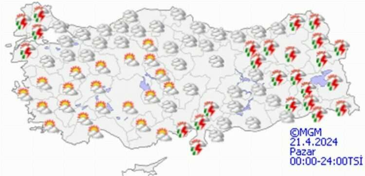 Meteoroloji’den yapılan uyarıda, Güney ve İç Ege, Batı Karadeniz, İç Anadolu ile batı ve orta Karadeniz’de ise fırtına beklendiği söylendi.