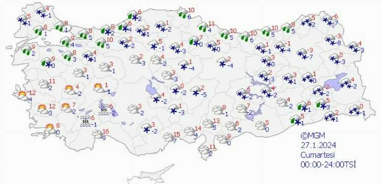 Cuma günü kuvvetini artıracak olan yağışın hafta sonu boyunca da devam etmesi bekleniyor. Meteoroloji, kuvvetli yağışlardan dolayı meydana gelebilecek ulaşımda aksamalar, buzlanma ve don gibi olumsuzluklara karşı dikkatli ve tedbirli olunması gerektiği ile ilgili uyarıda bulundu.