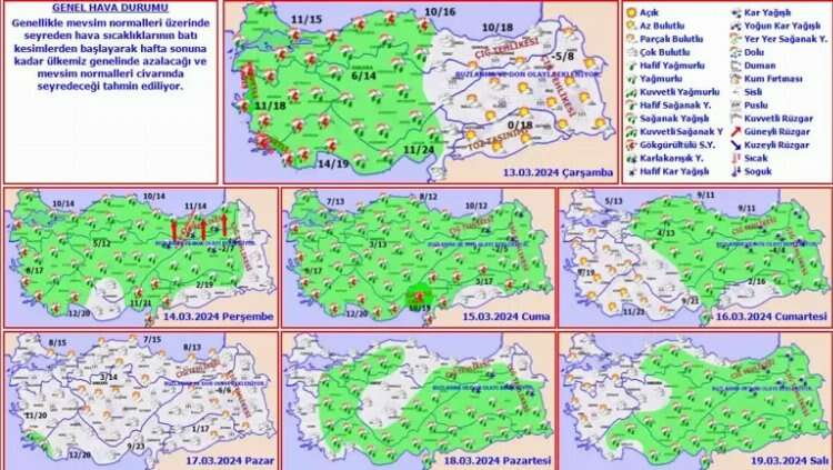 Meteoroloji Genel Müdürlüğü hafta boyunca yurdun özellikle batı kesiminde havanın sağanak yağışlı olacağını açıklamıştı. Yurt genelinde hava sıcaklıkları birkaç derece düşerken yağışlı hava etkisini göstermeye başladı.