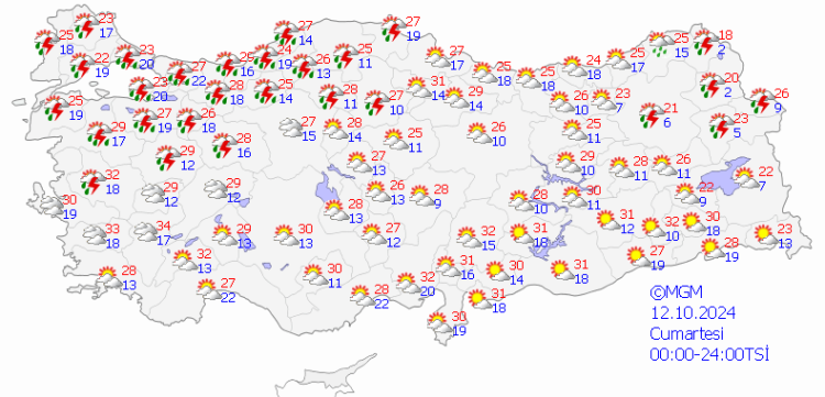 Meteoroloji Genel Müdürlüğü'nden İstanbul ve Ankara ile birlikte birçok il için hafta sonu gök gürültülü sağanak yağış uyarısı yapıldı. 12 Ekim Cumartesi günü başlaması öngörülen sağanak yağış, özellikle Marmara ve Orta Karadeniz'de etkili olacak.