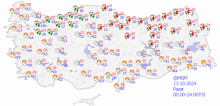 Ekim ayının neredeyse yarısına gelinmesine rağmen yurdun birçok yerinde hava sıcaklıkları mevsim normalleri üzerinde seyrediyor. Özellikle Marmara Bölgesinde eylül ayının yağışsız geçmesi üzerine barajlardaki su seviyesinin riskli seviyede olması endişe verirken ekim ayıda şu ana kadar yağışsız geçti. Ancak Meteoroloji son hava tahmin raporunda hafta sonu için Marmara’da sağanak uyarısında bulundu.
