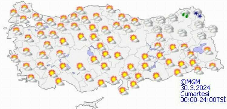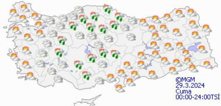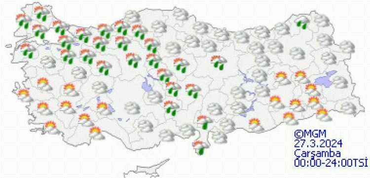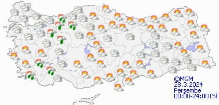 Meteoroloji Genel Müdürlüğü'nden alınan son hava tahminlerine göre; yurdun genelinin parçalı ve çok bulutlu olması beklenirken, Marmara'nın kuzeyi, Batı Karadeniz'in batısı, İç Anadolu'nun kuzeyi, Güneydoğu Anadolu'nun batısı, Bilecik, Kayseri, Aksaray, Niğde, Osmaniye, Kahramanmaraş, Mardin, İzmir'in kuzey, Manisa'nın doğu, Balıkesir'in güney kesimleri, Adana'nın güney ve doğu kesimleri ile Diyarbakır ve Batman'ın güney çevrelerinde havanın yağışlı ve rüzgârlı geçeceği tahmin ediliyor.