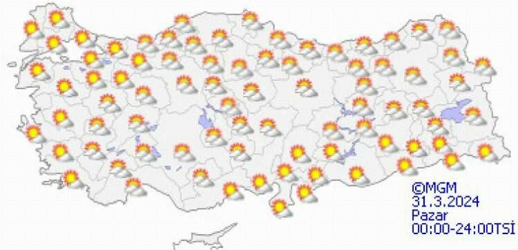 Rüzgârın ise genellikle güneyli yönlerden hafif, ara sıra orta kuvvette, Batı Akdeniz'in iç kesimleri ile Güney Ege'de yer yer kuvvetli olarak (40-60 km/saat) eseceği tahmin ediliyor.