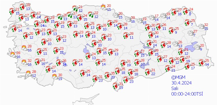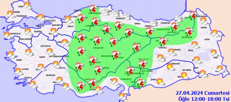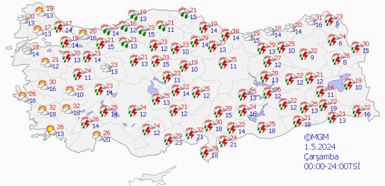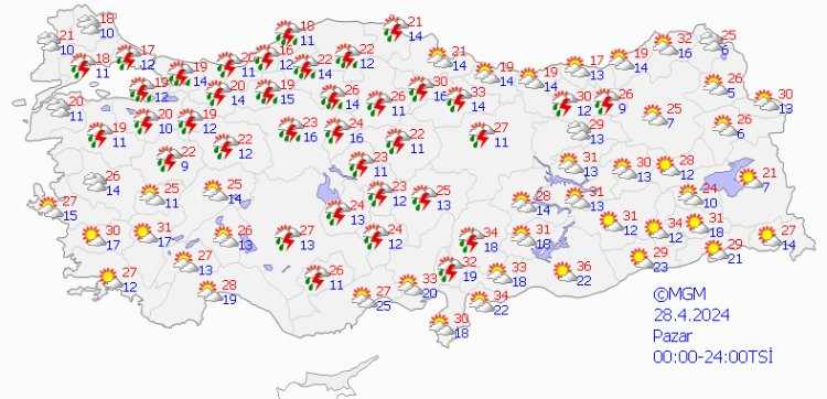 Yağışların kuzey ve iç kesimlerde genellikle yağmur, yer yer sağanak, kalan kesimlerde ise sağanak ve gök gürültülü sağanak şeklinde gerçekleşmesi bekleniyor.