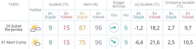 1 Mart Cuma günü Yalova hava durumunda ani bir düşüş beklenmezken, güneş genellikle bulut arkasında kalması ve havanın bir miktar sisli olması bekleniyor. Fakat, hava da ki nem oranı yüzde 96 seviyelerine kadar artış gösterebilecek.