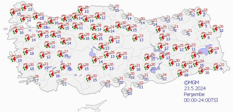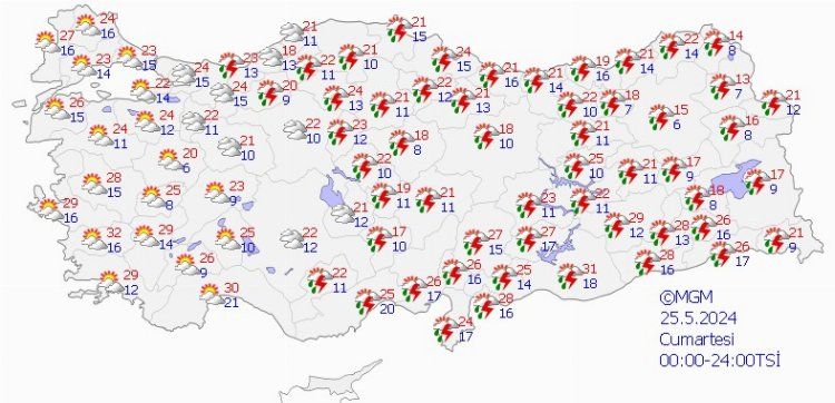 Yurdun bazı yerlerinde beklenen hava durumu şu şekilde: