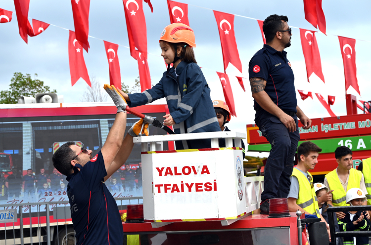 Yalova Belediyesi, İtfaiye Haftası kutlamaları kapsamında miniklere unutulmaz bir gün yaşattı. Kent meydanında ‘Küçük İtfaiyeciler’ adıyla düzenlenen etkinlik yoğun ilgi gördü.