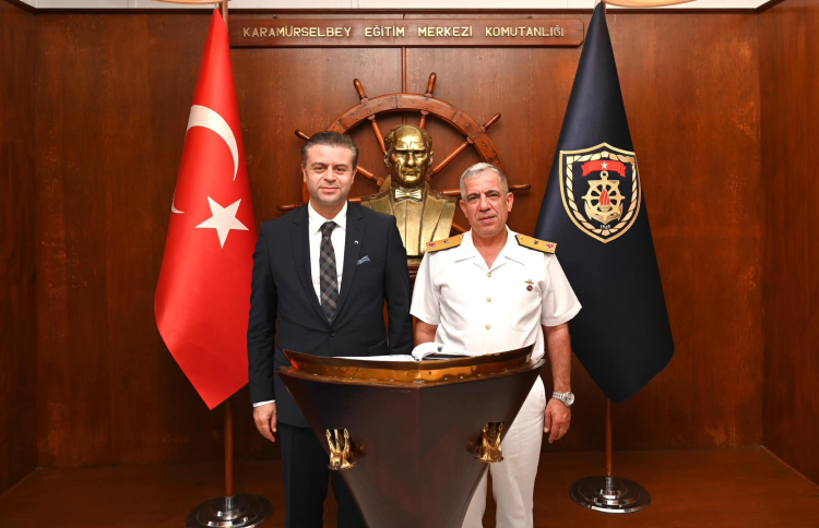 Yalova Milli Eğitim Müdürü Halil İbrahim Akmeşe, Karamürselbey Eğitim Merkezi Komutanı ve Yalova Garnizon Komutanı Tuğamiral Mehmet Tahir Göncüoğlu'nu makamında ziyaret ederek başarı dileklerinde bulundu