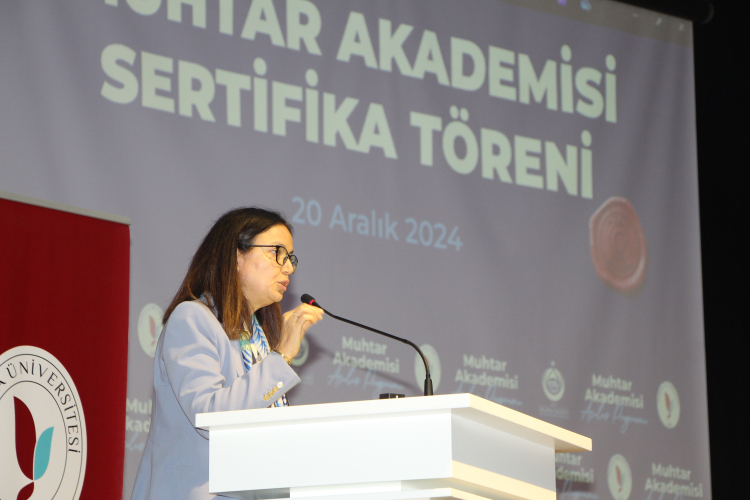Muhtar Akademisi kapanış töreninde söz alan İçişleri Bakanlığı İller İdaresi Daire Başkanı ve Yeşilay Mütevelli Heyeti Üyesi Suna Üstüner ise muhtarların ülkenin yönetim sisteminde üstlendikleri göreve Cumhurbaşkanı Recep Tayyip Erdoğan’ın sözleri ile atıfta bulundu. Muhtarların yönetim sistemi piramidinin temelini oluşturduğunun altını çizen Üstüner, “Bu akademi muhtarlıklarımız vasıtası ile halkımıza daha iyi hizmet verebilmemiz adına son derece önemli. Cumhurbaşkanımız sayın Recep Tayyip Erdoğan yaptığı bir konuşmasında muhtarların bu ilkenin yönetim sistemi piramidinin temeli olduğunu dile getirdi. Onun bu sözleri de bu akademilerimizin düzenlenmesine yön verdi. Düzenlenen bu akademi başından sonuna kadar muhtarlarımızın gelişimine katkı sunmak, bilgilerini arttırmak, yeni beceriler kazandırmak ve bir araya gelerek güçlenmek adına çok önemli bir platform oldu. Sizler mahallelerinizde çok önemli bir görev üstleniyorsunuz. Bu akademiden sonra buradan aldığının bilgiler ve becerilerle sorunlara daha kapsamlı çözümler ve vatandaşlarımıza daha etkili hizmetler üreteceğinize eminiz.” şeklinde konuştu.
