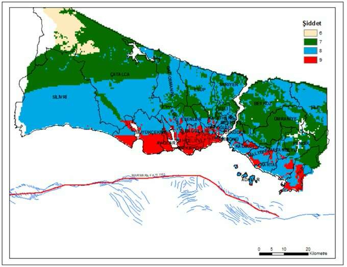 Orta Marmara fayı kırılırsa deprem büyüklüğü 7.2 olur. Büyükçekmece'den Eminönü'ne kadar sahile yakın alanlarda şiddet IX'a, çok zayıf zeminlerde X değerine ulaşabilir.