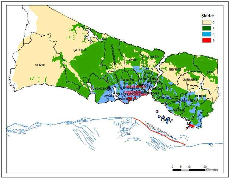 “Sadece Adalar fayı kırılırsa 6.9 büyüklüğünde deprem beklenir. Tuzla ve Adalar'da zayıf zeminlerde yerel olarak IX şiddet değerlerine ulaşılır.