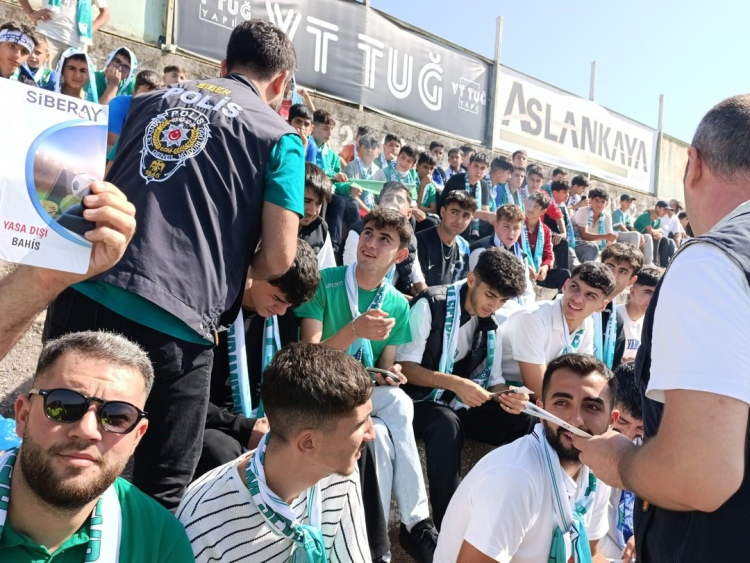 Bu doğrultuda Siber Suçlarla Mücadele Şube Müdürlüğü görevlilerince SİBERAY Projesi kapsamında Yalova Atatürk Stadyumu’nda gerçekleştirilen Yalovaspor - Yeşil Yalova FK. müsabakası taraftarlarına yönelik “Yasadışı Bahis” konusunda broşür dağıtımı yapılarak bilgilendirme ve farkındalık çalışması gerçekleştirildi.