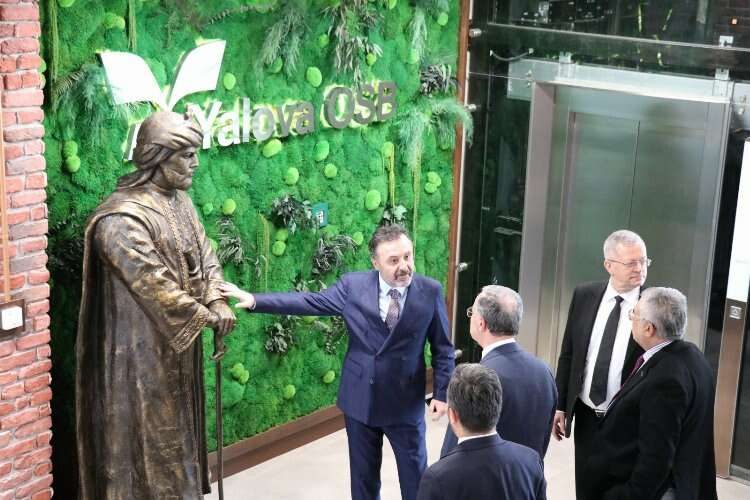OSBÜK Başkanı Memiş Kütükçü ise, Yalova Makine OSB’nin her açıdan ülkenin örnek OSB’lerinden birisi olduğunu ifade ederek, ortaya konan çalışmadan dolayı Yalova Makine OSB Yönetim Kurulu Başkanı Direnç Özdemir’i kutladı. Kütükçü, “Yalova Makine OSB, çevreye duyarlı, yenilikçi ve katılımcı odaklı bir OSB olarak dikkat çekiyor. OSB’nin vizyonu, misyonu ve hedefleri, ülkemizin sanayi ve ekonomi alanında ilerlemesine katkı sağlayacak niteliktedir. OSB’nin yeşil OSB unvanını uluslararası boyutta kazanma hedefini destekliyor ve takdir ediyoruz. OSB’nin altyapı ve üstyapı yatırımları, enerji verimliliği, lojistik kolaylıkları, fabrika inşaatları ve çevre laboratuvarı gibi çalışmaları, OSB katılımcılarının maliyetlerini minimize ederek, rekabet güçlerini artıracaktır. OSB’nin limanlara ve demiryolu bağlantısına sahip olması, OSB’nin ulusal ve uluslararası pazarlara ulaşmasını kolaylaştıracaktır. OSB’nin ortak sağlık güvenlik birimi, atık yönetim tesisi gibi hizmetleri, OSB katılımcılarının zorunlu gelir ve gider harcamalarını azaltacaktır. Tüm bu çalışmalar, OSB’nin sürdürülebilir bir OSB olmasını sağlayacaktır.” diye konuştu.