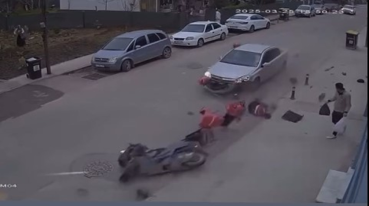 Kazada motosiklet parçalanırken, otomobilde ağır hasar oluştu. Kaza anı çevredeki bir iş yerinin güvenlik kamerasına anbean yansıdı. Kazayla ilgili soruşturma başlatıldı.