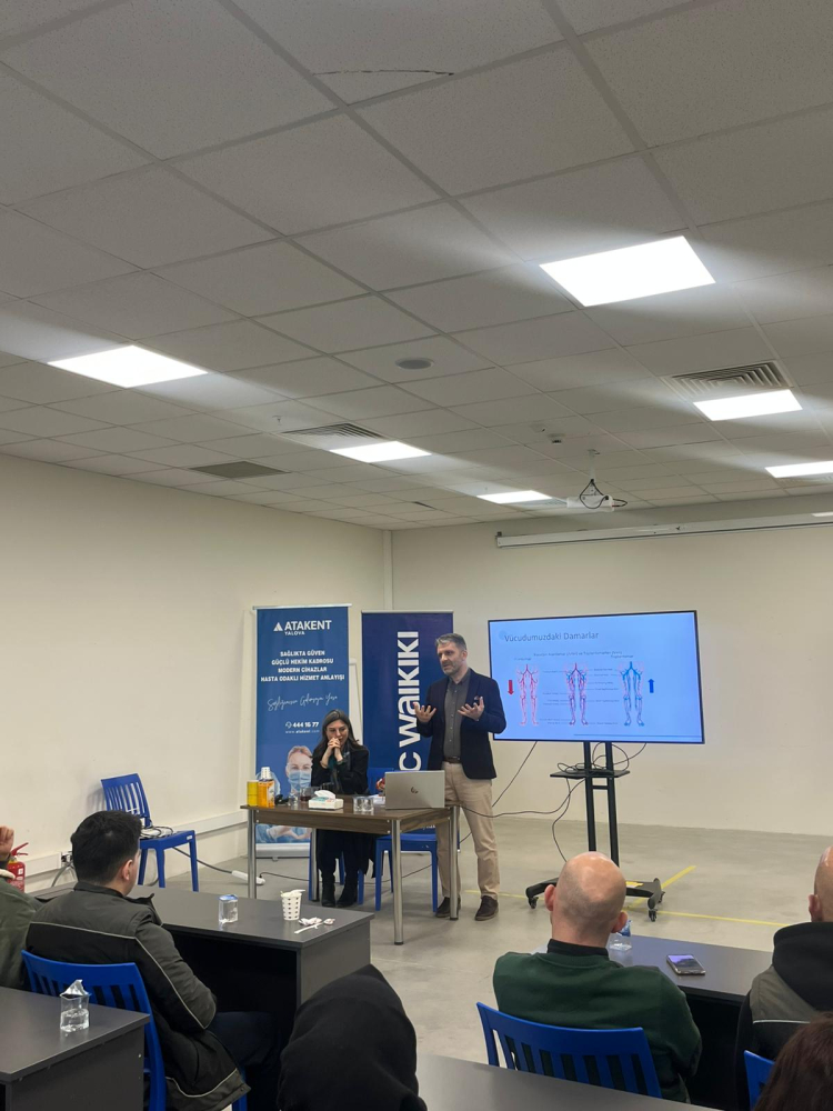 Etkinlikte ayrıca Doç. Dr. Engin Akgül tarafından gerçekleştirilen sunumda, bacak damar hastalıkları, varis oluşumu ve güncel tedavi yöntemleri ele alındı. Yöntemler ve modern tıbbi uygulamalar hakkında bilgi veren Akgül, erken müdahalenin tedavi sürecindeki önemine değindi.