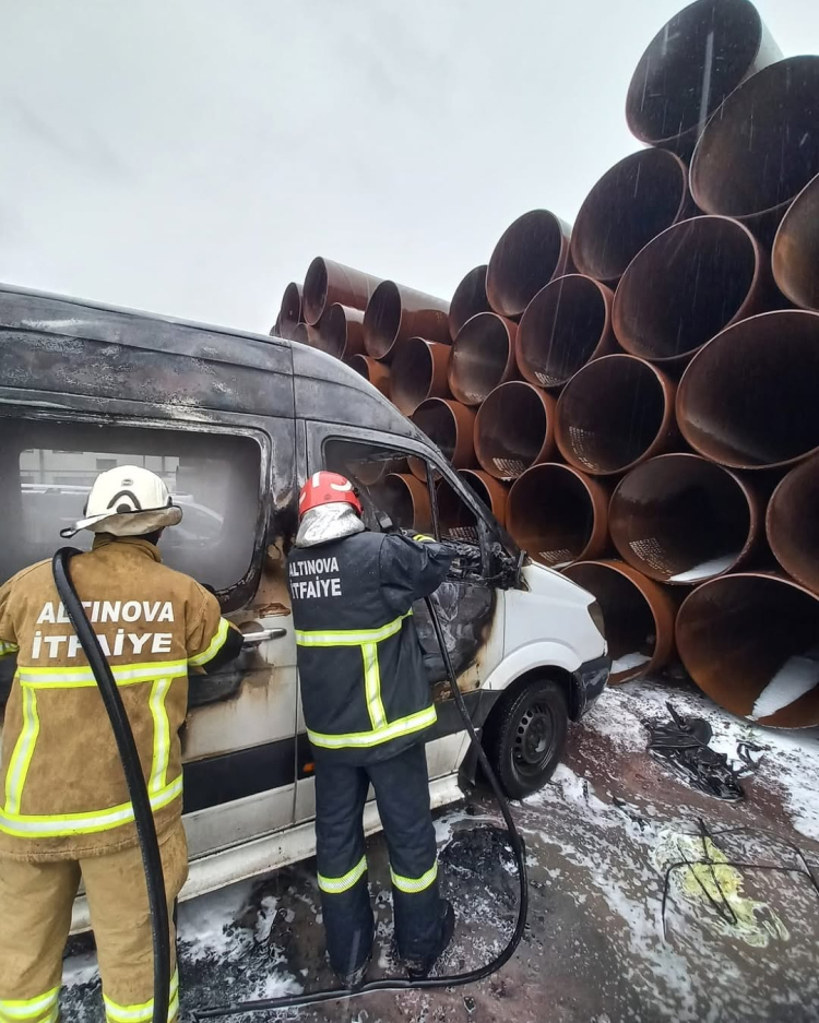 Yalova'nın Altınova ilçesinde faaliyet gösteren bir tersanenin otoparkında bulunan servis minibüsünde çıkan yangın itfaiye ekipleri tarafından söndürüldü.