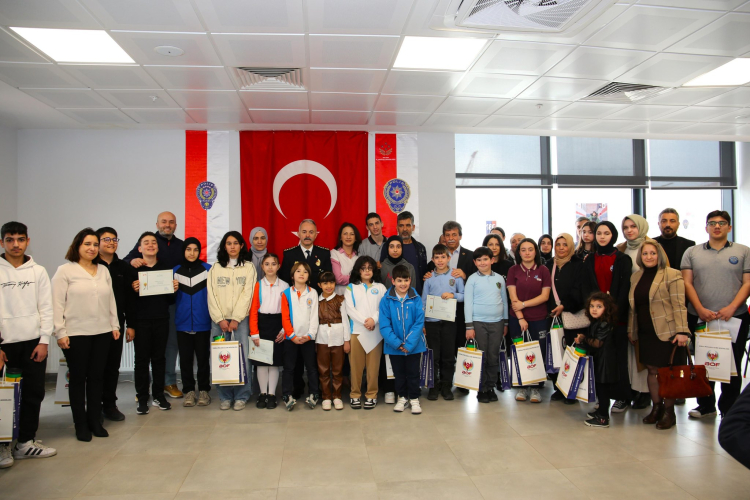 Dereceye giren öğrencilere teşekkür belgeleri ve hediyeleri takdim edildi. Polis temalı şiir ve kompozisyonlarıyla duygu dolu anlar yaşatan öğrenciler, resimleriyle de sergide büyük beğeni topladı.