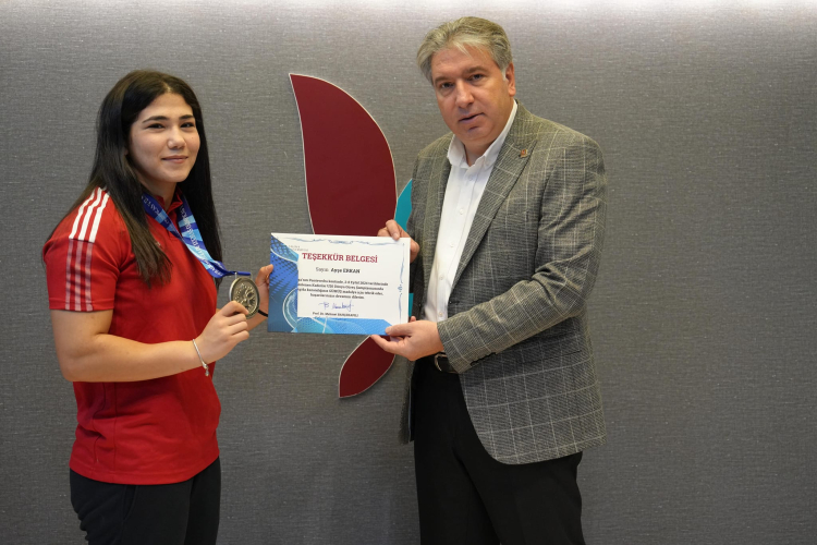 Rektör Bahçekapılı, sporculara üniversiteye kazandırdıkları başarı ve gurur dolayısıyla teşekkür belgeleri takdim ederek, "Sporcularımızın elde ettikleri başarılar, üniversitemiz adına büyük bir onur kaynağıdır. Onların bu azmi ve başarıları, gelecekte daha büyük başarılara imza atacaklarının göstergesidir. Üniversitemiz, sporun her alanında öğrencilerimizi desteklemeye devam edecek” dedi.