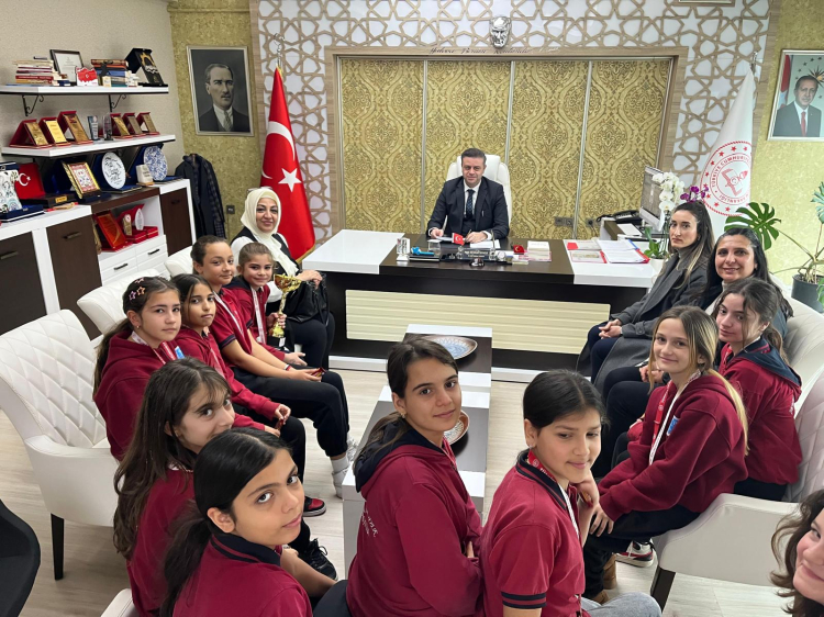 Yalova’da düzenlenen turnuvalarda başarı gösteren Şehit Talha Bahadır Ortaokulu’nun Kız Voleybol Takımı ve Yıldız Erkek Futsal Takımı, şampiyonluk kupaları il birlikte Yalova İl Milli Eğitim Müdürü Halil İbrahim Akmeşe’yi makamında ziyaret etti. Ziyarete, Okul Müdürü Gülşen Sertkaya, Beden Eğitimi Öğretmenleri Onur Başerli ve Sema Abeden ile Antrenör Gizem Evren Karahasanoğlu da katıldı.