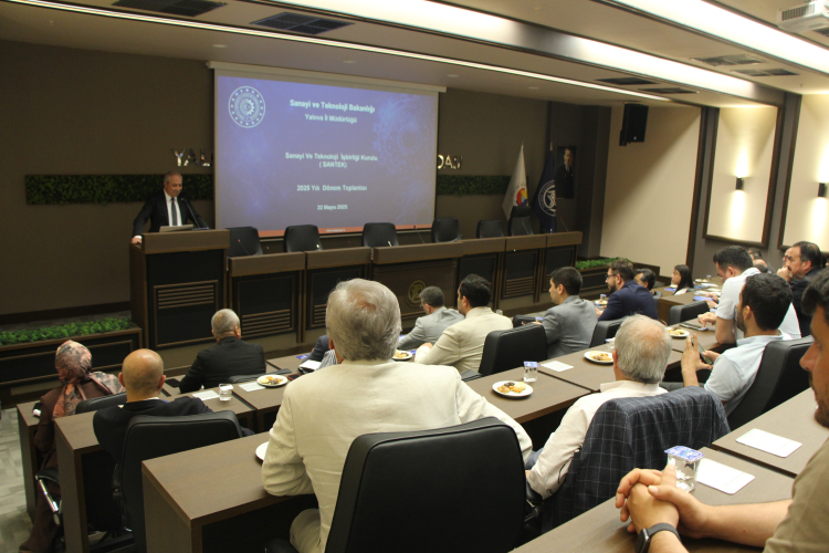 Sanayi ve Teknoloji İşbirliği Kurulu (SANTEK) 2025 yılı 2. toplantısı YTSO Meclis Salonu’nda geniş bir katılımla gerçekleştirildi. Toplantıya YTSO Başkanı Cemil Demiryürek, Yalova Sanayi ve Teknoloji İl Müdürü İlhan Aydın, İŞKUR İl Müdürü Erhan Dede, Gebze Üniversitesi Teknoloji ve Transfer Ofisi Genel Müdürü Önder Başkaya, TÜBİTAK Türkiye Sanayi Sevk ve İdare Enstitüsü’nden Batın Birol, MARKA Yalova Yatırım Destek Ofisi İl Koordinatörü Murat Özkan, Küçük ve Orta Ölçekli İşletmeleri Geliştirme ve Destekleme İdaresi Başkanlığı (KOSGEB) Yalova İl Müdürü Onur Kurtçu ile SANTEK üyeleri katıldılar. Kurulun 2025 yılı 2. toplantısının açılış konuşmasını YTSO Başkanı Cemil Demiryürek gerçekleştirdi.