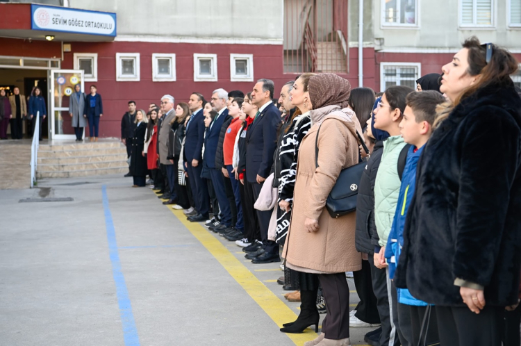 Bu kapsamda Yalova Valisi Dr. Ahmet Hamdi Usta ve Yalova İl Milli Eğitim Müdürü Aytekin Yılmaz, Sevim Göğez Ortaokulu’nda düzenlenen bayrak töreninde öğrenciler ve öğretmenlerle bir araya geldi.
