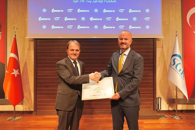 Çalışma ve Sosyal Güvenlik Bakan Yardımcıları Ahmet Aydın, Adnan Ertem ve Faruk Özçelik ile Ulaştırma ve Altyapı Bakan Yardımcısı Ömer Fatih Sayan, SGK Başkanı Raci Kaya, Bankalararası Kart Merkezi (BKM) AŞ Genel Müdürü Ozan Deniz, PTT AŞ Genel Müdürü Hakan Gülten ve birçok yetkilinin de katılımıyla SGK Genel Müdürlük binasında SGK, PTT ve TROY arasında emeklilere özel iş birliği protokolü imzalandı.
