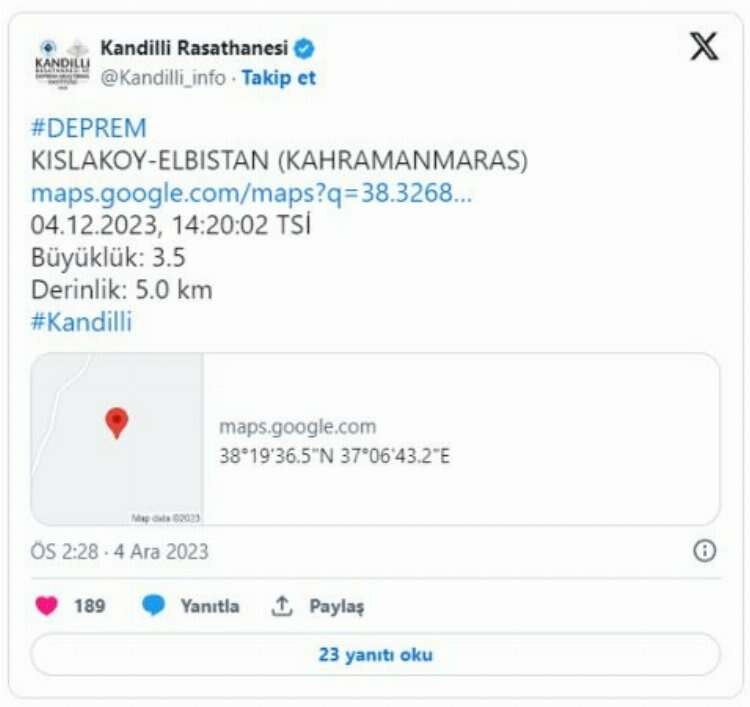 Bugün ise saat 10.21 sularında Bursa'da büyüklüğü 3.5 olan bir deprem meydana geldi.