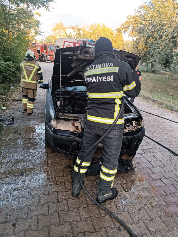 İhbar üzerine olay yerine intikal eden Altınova Belediyesi İtfaiye Müdürlüğü ekipleri yangına müdahale etti. Tazyikli suyla yangını kontrol altına alan ekipler alevleri söndürdü. Olayda can kaybı veya yaralanma yaşanmadı. Motor kısmı küle dönen araç kullanılmaz hale geldi.