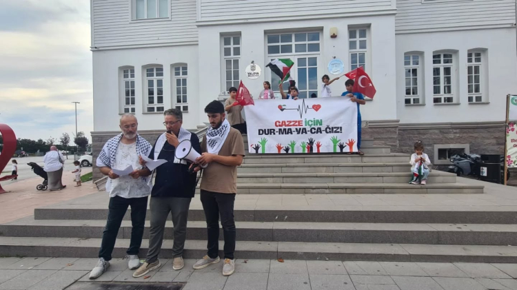 Gazze’ye yönelik ablukanın kaldırılması ve insani yardımın ulaştırılması amacıyla 44 ülkeden yaklaşık 1000 aktivistin katılımıyla oluşturulan Küresel Sumud Filosu’na Türkiye’den yaklaşık 100 kişi destek verirken, Yalova’dan da Mustafa Yumuk’un yer aldığı açıklandı. Bu kapsamda İHH Yalova Şubesi tarafından Kent Müzesi önünde bir basın açıklaması gerçekleştirildi. Çok sayıda vatandaşın katılım gösterdiği açıklamada, açılan pankartlar ve atılan sloganlarla İsrail’in Gazze’de uyguladığı abluka ve soykırım politikaları protesto edildi. Katılımcılar, “Gemiler Gazze’ye”, “Nehirden Denize Özgür Filistin” ve “Katil İsrail Filistin’den Defol” sloganlarıyla Sumud Filosu’na destek mesajı verdi.