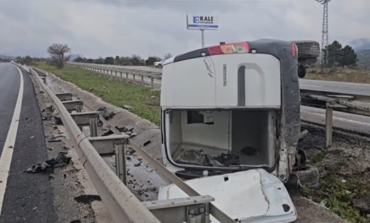 Alınan bilgilere göre yağışlı havada kontrolden çıkan hafif ticari araç, savrularak bariyerleri aştıktan sonra refüj içine devrildi. Kaza sonrası araçta büyük çapta maddi hasar meydana gelirken, içinden çıkarılan sürücü kazayı hafif yaralı olarak atlattı.
