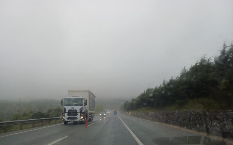 Bursa- Yalova karayolunda Salı günü sabah saatlerinden itibaren etkili olan yoğun sis nedeniyle görüş mesafesi 20 metreye kadar düştü.