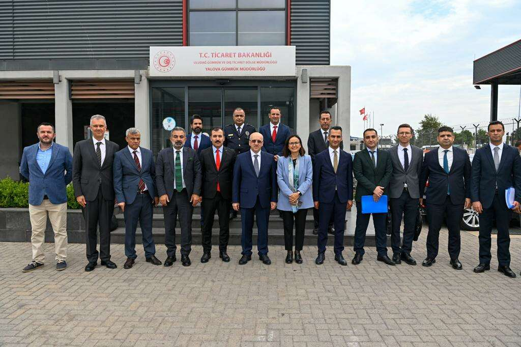 Yalova’ya gelen Ticaret Bakan Yardımcısı Sezai Uçarmak ve beraberindekiler Yalova Valisi Dr. Hülya Kaya tarafından karşılandı. Bakan Yardımcısı Uçarmak ilk olarak Yalova Gümrük Müdürlüğü’nü ziyaret etti.
