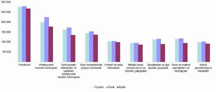 Ücretli çalışanların brüt kazançları baz alındığında, ekonomik faaliyet ayrımı bakımından incelendiğinde, en yüksek yıllık ortalama brüt kazanç 293 bin 511 TL ile finans ve sigorta faaliyetlerinde gerçekleşti. Bu ekonomik faaliyeti, 284 bin 842 TL ile bilgi ve iletişim ve 229 bin 108 TL ile kültür, sanat, eğlence, dinlence ve spor faaliyetleri takip etti.