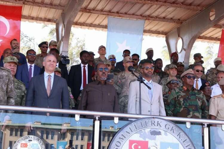 Mahmud, törende yaptığı konuşmada, Türkiye'nin Somali ordusuna desteğini övdü ve teşekkürlerini iletti.