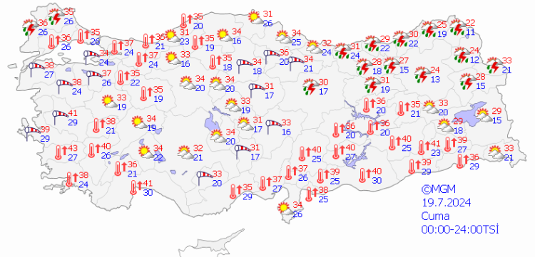 Yurt genelinde temmuz ayı ile birlikte sıcaklık değerleri giderek artmaya devam ediyor. Birçok ilde 40 dereceyi aşan sıcaklık değerleri temmuz sonuna kadar da düşecek gibi durmuyor. Yurdun kuzeydoğu bölgelerinde yağış alacak bazı iller dışında kavurucu sıcaklar ay sonuna kadar devam edecek.