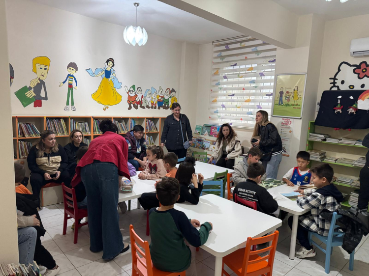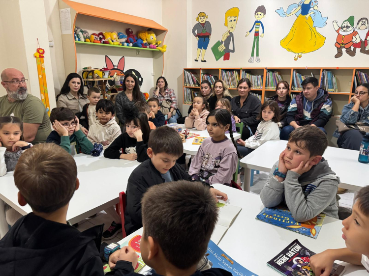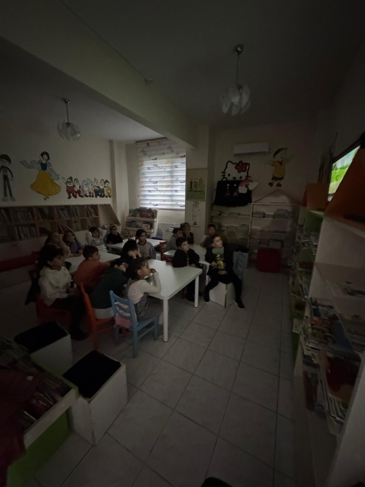 Etkinlik kapsamında öğrenciler kütüphaneyi tanıma fırsatı buldu, kitapları inceledi ve okuma saatine katıldılar.