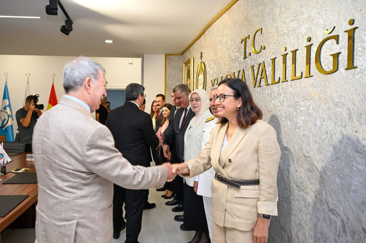 Yalova Valiliği’nde düzenlenen bayramlaşma merasiminde Yalova Valisi Dr. Hülya Kaya, Karamürselbey Eğitim Merkezi, Garnizon Komutanı Tuğamiral Mehmet Tahir Göncüoğlu, AK Parti Yalova Milletvekili Meliha Akyol, Yalova Belediye Başkanı Mehmet Gürel, Yalova Üniversitesi Rektörü Prof. Dr. Mehmet Bahçekapılı ve protokol üyeleri tebrikleri kabul etti.