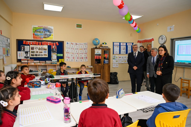 Sınıfları gezerek öğrencilerle yakından ilgilenen Vali Hülya Kaya, öğretmenlerle bir araya gelerek okulun fiziki durumu ve eğitim ihtiyaçları hakkında istişarelerde bulundu.