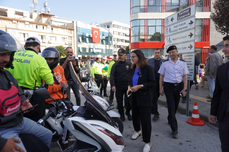 Yalova Valisi Dr. Hülya Kaya, trafik ekiplerinin güvenliği artırmak amacıyla düzenlediği motosiklet denetimlerine katıldı.