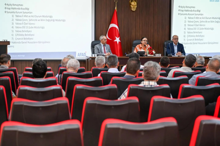 Yalova Valisi Dr. Hülya Kaya’nın başkanlık ettiği toplantıya ilgili kurum ve kuruluşların müdürleri katıldı. Toplantıda Yalova İl Afet ve Acil Durum Müdürlüğü, Yalova Çevre, Şehircilik ve İklim Değişikliği Müdürlüğü, Yalova İl Özel İdaresi, Yalova DSİ 13. Bölge Müdürlüğü, Yalova Belediyesi, Çiftlikköy Belediyesi ve Çınarcık Belediyesi de İRAP kapsamında yaptıkları çalışmalar hakkında bilgiler verdi.