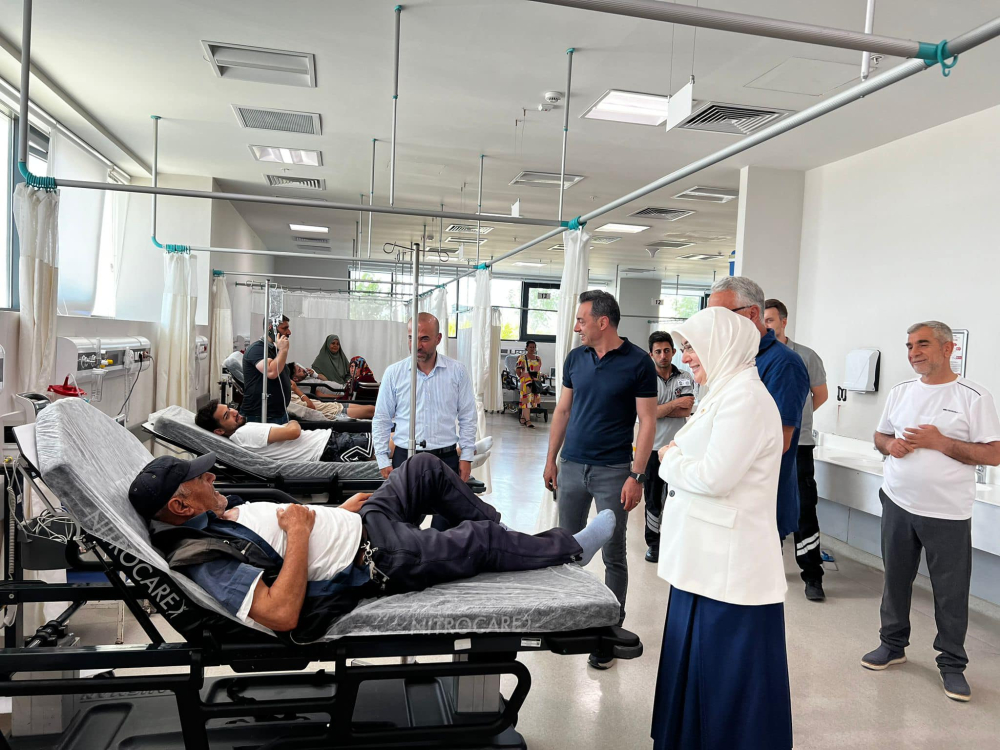 Hastalarla sohbet eden Meliha Akyol ve Umut Güçlü, onların sorun ve taleplerini dinlemeyi ihmal etmedi.