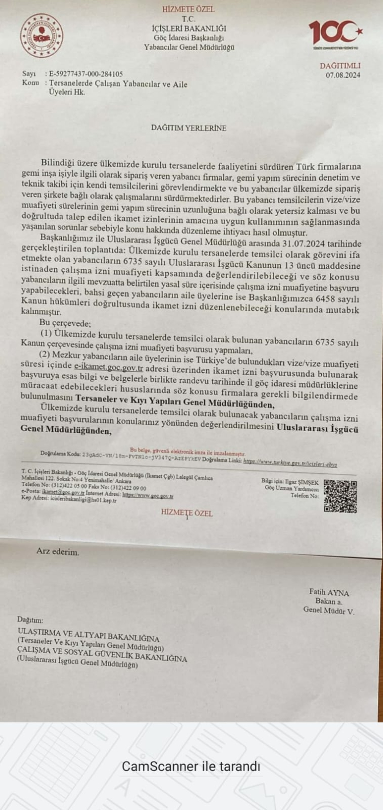 Yabancı uzmanların çalışma ve ikamet sorunları çözüme kavuşuyor! Tersaneler için girişim sonuç verdi