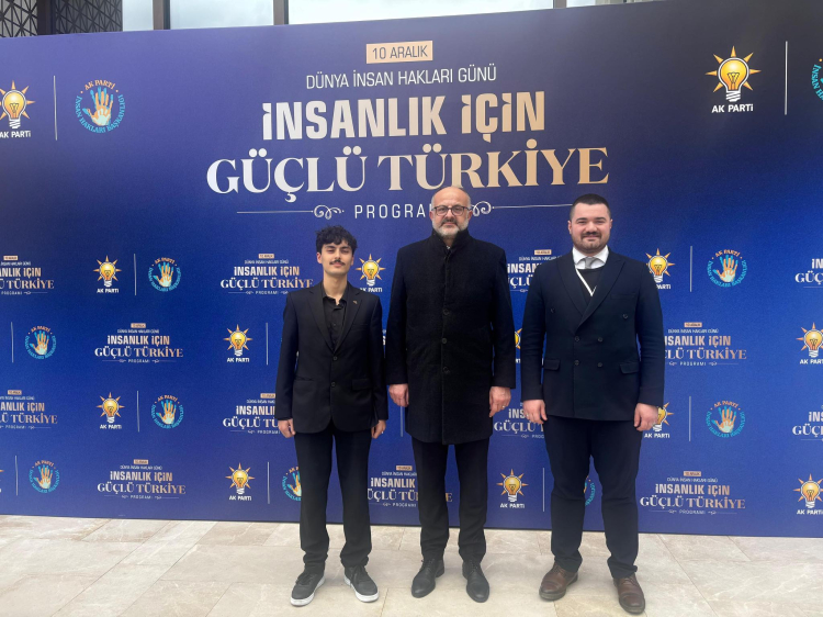 İnsan Hakları Evrensel Beyannamesi'nin kabulünün 77. yıl dönümü olan 10 Aralık İnsan Hakları Günü, AK Parti Kongre Merkezi'nde düzenlenen anlamlı bir programla idrak edildi. "İnsanlık İçin Güçlü Türkiye" temasıyla gerçekleştirilen ve Cumhurbaşkanı Recep Tayyip Erdoğan’ın teşrifleriyle yapılan toplantıya Yalova teşkilatı da geniş katılım sağladı. Programa AK Parti Yalova İl İnsan Hakları Başkanı Adem Saruhan, İl Gençlik Kolları Başkanı Canay Caner ve İl Gençlik Kolları Yönetim Kurulu Üyesi Oğuz Eren Bitiş katılarak Yalova’yı temsil etti.