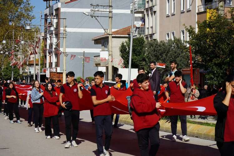 Altınova’da askeri bando eşliğinde 400 metrelik Türk bayrağıyla Cumhuriyet Yürüyüşü gerçekleştirildi
