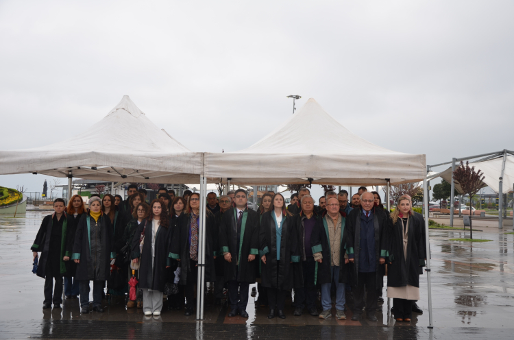 Yalova Barosu Başkanı Avukat Elif Turnacı Çavuş Atatürk Anıtına çelenk bıraktı. Ardından saygı duruşu yapıldı ve İstiklal Marşı okundu. Tören Yalova Barosu Başkanı Avukat Elif Turnacı Çavuş’un konuşmasıyla sona erdi. Açıklamasına “Kıymetli Meslektaşlarım, değerli basın mensupları hepinizi saygıyla selamlıyor, tüm meslektaşlarımın 5 Nisan Avukatlar Gününü kutluyor, aramızdan ayrılan kıymetli üstatlarımızı saygı ve rahmetle anıyorum” diye başlayan Çavuş, “5 Nisan Avukatlar Günü yalnızca bir meslek günü değil, bu ülkede adalet için mücadele eden herkesin günüdür. Yaşadığımız süreçte ne yazık ki milyonlarca seçmenin iradesinin yok sayıldığı; anayasal haklarını kullanmak isteyen gençlerin gelecek umutlarının çalındığı, hukuk devleti ilkesinin aşındığı, yargının bağımsızlığının zedelendiği bir döneme tanıklık ediyoruz. 5 Nisan Cumartesi günü 81 ilden gelen binlerce meslektaşımızla birlikte Ankara’da “Savunmanın Bağımsızlığı ve Hukuka Saygı “için yürüyüp, 200 bin meslektaşımız adına Atamızın Huzuruna çıktık. Bağımsız Savunma ve Hukukun Üstünlüğünün teminatı olan avukatlar olarak dün olduğu gibi bugün de görevimizin başında, sorumluluğumuzun farkındayız” sözlerini sarf etti.