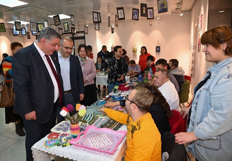 Yalova Belediye Başkanı Mehmet Gürel, Yalova Yeni Yaşam Engelliler Derneği tarafından hazırlanan sergiyi ziyaret etti