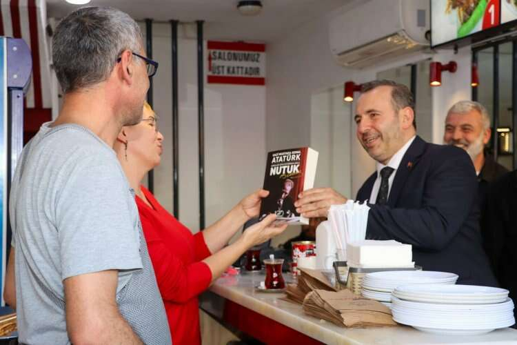 Yalova Belediye Başkanı Mustafa Tutuk, 10 Kasım Atatürk’ü Anma Günü’nde hemşehrilerine ‘Nutuk’ kitabı hediye etti. Başkan Tutuk’a, AK Parti Yalova İl Başkanı Umut Güçlü de eşlik etti