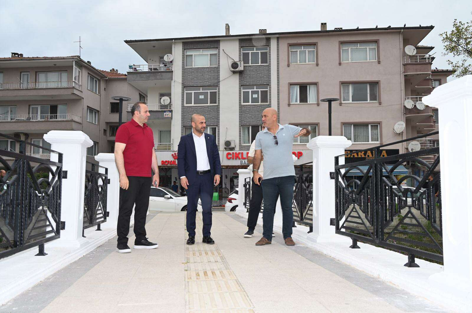 Mesire Yolu Sokak ile Gezi Yolu Sokak’ı birbirine bağlayan yaya köprüsünün yenileme çalışmasının tamamlanmasının ardından Yalova Belediye Başkanı Mustafa Tutuk ve AK Parti Yalova İl Başkanı Umut Güçlü yerinde incelemelerde bulundu.